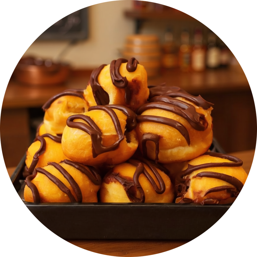 Soft shell filled with carrot cake Holland cream, topped with a carrot décor—rich, velvety, and irresistibly smooth.