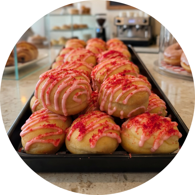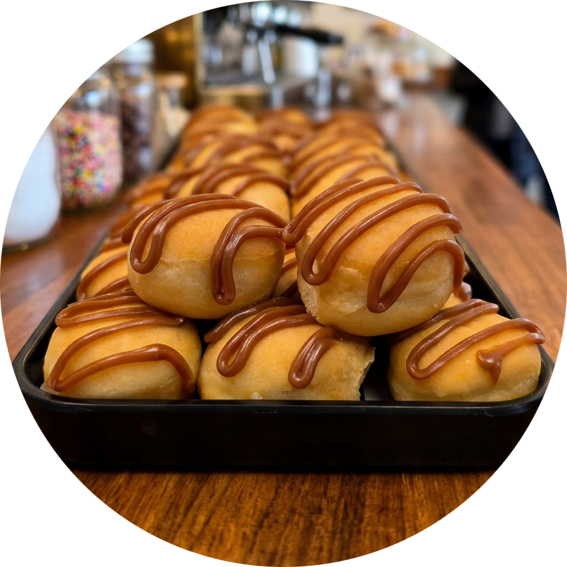 Our donuts are more than just a treat; they’re an experience. From boozy donuts with a spirited twist to our ever-changing Weekly Tastes menu, which promises new and exciting flavors with each visit. Pair your treat with a bold coffee, refreshing iced tea, or specialty latte. Whether you’re here for the donuts, the drinks, or a refreshing Dole Whip delight, every visit is a flavorful adventure.