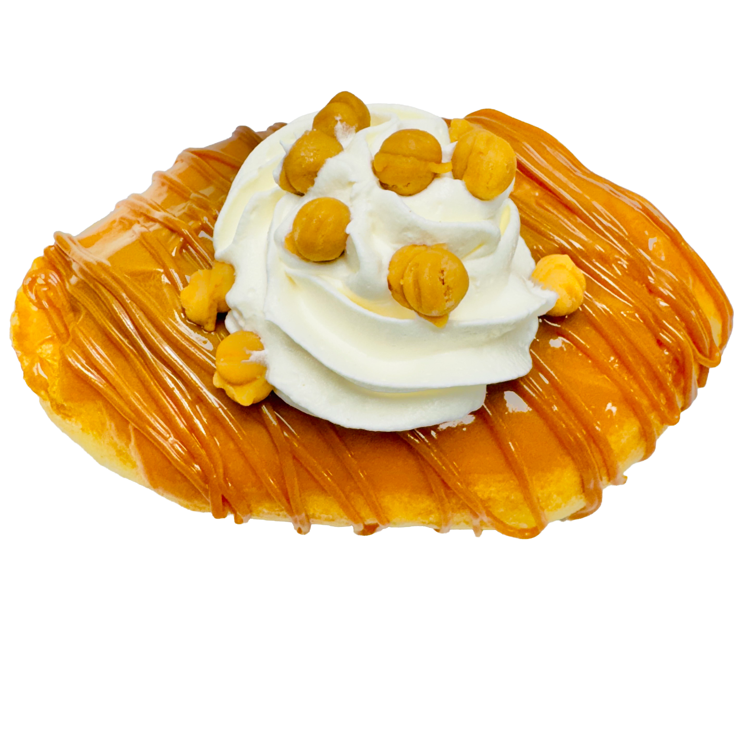 Classic ring dipped in rich dulce de leche, topped with whipped cream and chewy caramel candy.