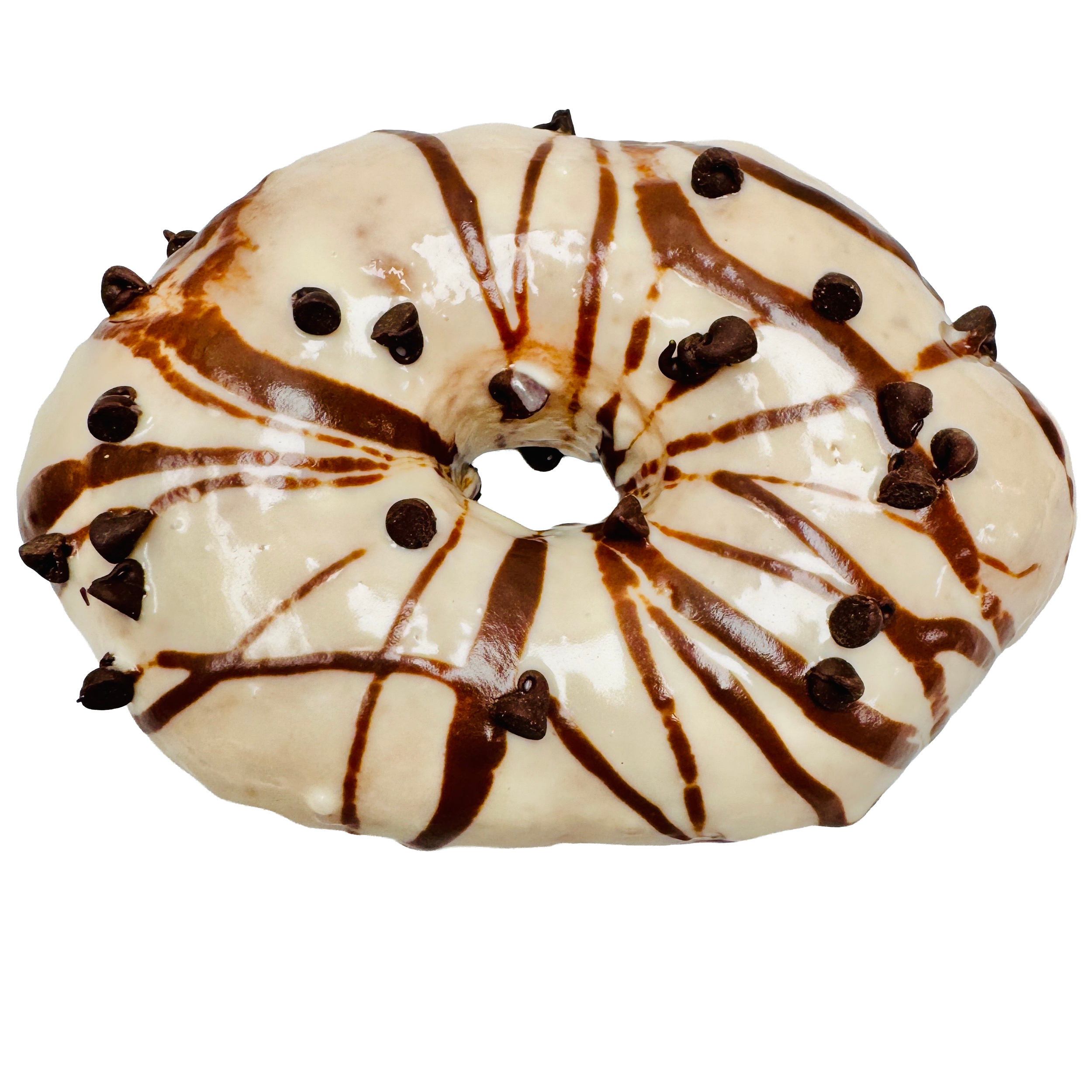 Espresso-glazed ring topped with chocolate chips and a smooth espresso-chocolate drizzle.